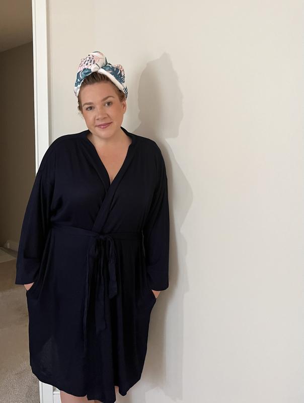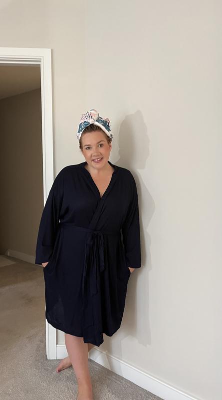 Great everyday wrap to use when getting dressed. Soft and comfortable-roomy but not to loose fitting.
