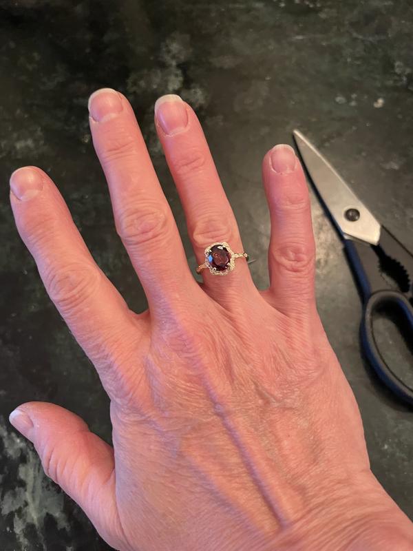 This was the perfect ring to celebrate my granddaughters graduation day from Bellarmine University in Louisville, KY. It is elegant and beautiful; it matches the university colors, and is feminine! She loved it and wears it with pride!