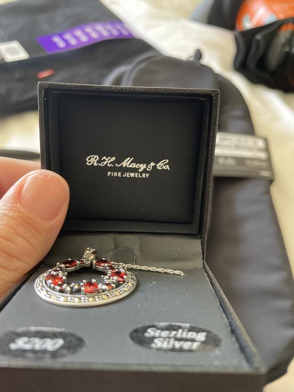 Garnet (2-3/8 ct. t.w.) & Marcasite Pendant on 18" Chain in Sterling Silver