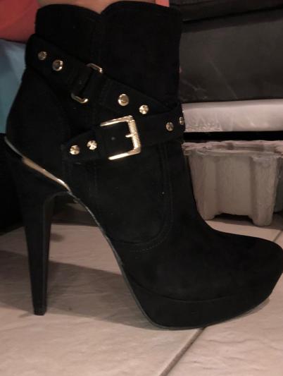 • Round-toe platform ankle booties with zipper closure