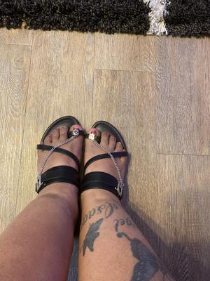 The sandal is so beautiful! Can dress this sandal up or down, depending on how you want to look. I purchased the pink and it matches so many of my pink outfits! The gold chain on the shoe makes it pop out. True to size. I really like these sandals!