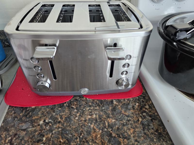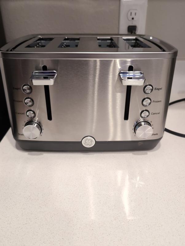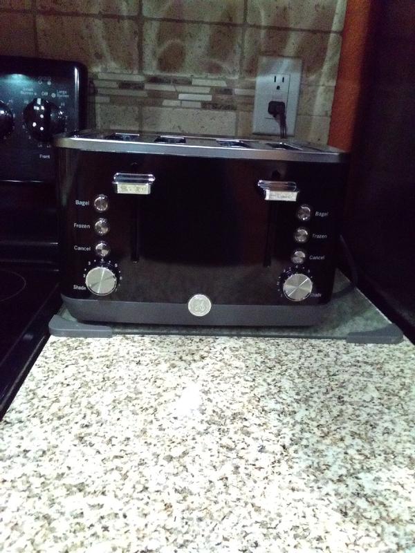 Ok. Well. We have had friends make fun of us in how long we keep damaged or poorly performing toasters. Our last one required that we tape the cord to the bottom of the upper cabinets so as to circumvent the power cord electrical short. Hey! We got 30 years out of that unit. But they aren't making fun of us anymore. Our new GE rocks! Clean. Attractive. Functional. Our first piece of toast was perfect. I set the darkness to #4 and it popped out timely and in perfect toasted condition. We are very pleased with the product.