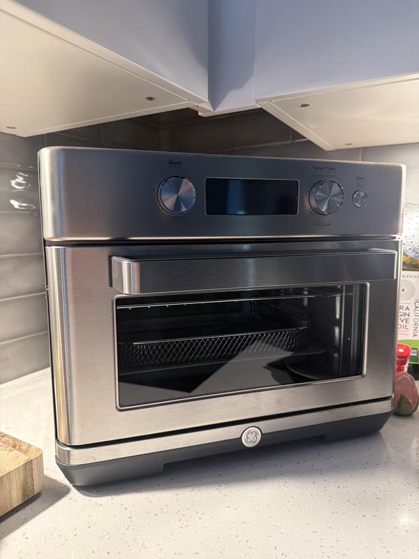 I love how this matches all the other GE appliances. This appliance is so quiet when running. GE is the only company I will ever buy appliances from!! Everything cooks so evenly and crisp and I love it. There’s many features that make it so much easier to cook instead of heating up my big oven for small things!