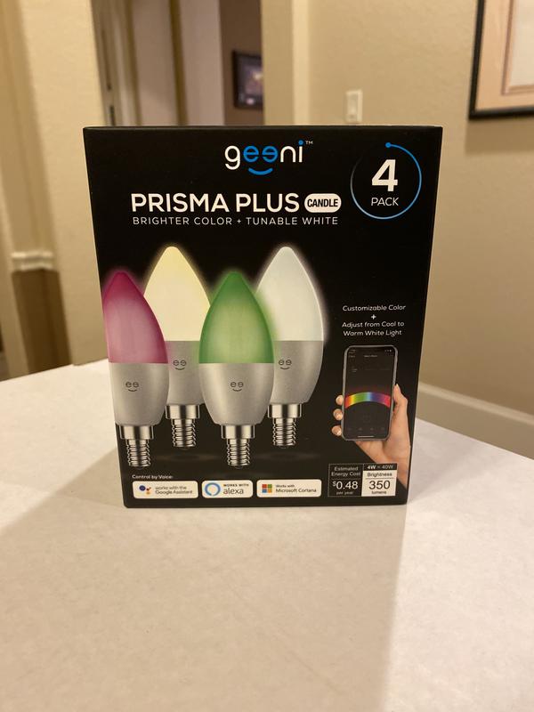 Prisma Plus Candle Wi-Fi LED Smart Bulb, B11 Candelabra, 4W, E12 Base 350lm Tunable and Dimmable RGB Bulb, Compatible with Alexa and The Google Assistant, No Hub Required (4 Pack)