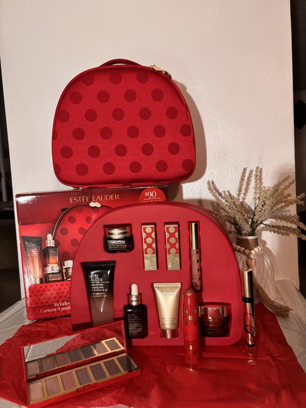 I absolutely LOVE this holiday makeup set! It has everything you need for a gorgeous date night out, or a brunch with friends. The lipsticks feel great on the lips and lasts. The blush stick blends great with foundation, and also just on bare skin for a healthy, natural look. The mascara is a high quality formula and doesn't irritate my eyes. The eyeshadow pallet can be used to create many lovely looks. The skincare products feel luxurious and absorb well. My skin looks amazing after using them just a week, and I'm still using them. The red bag is super cute and reminds me of a certain beloved mouse character. I think this would be an outstanding gifting option this holiday season. There's no filler to it. They're all great, usable products. I received this product for free from Estee Lauder for testing and review purposes.
