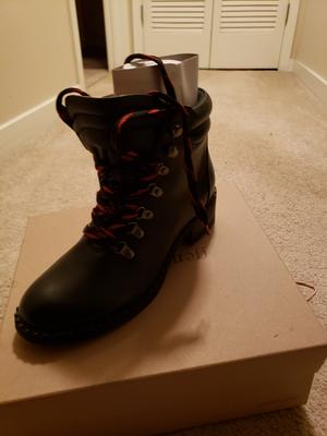 These boots are exactly what I was looking for; fit true to size, comfortable as.......and cute!!!! No, the shoe strings are not a solid black as shown, big deal, but the red stitching design in the black string is still cute. Otherwise, get new shoe strings!!! I just got my pair today and have been walking around the house all day in them. I Can't wait to wear them outside!! A must have!