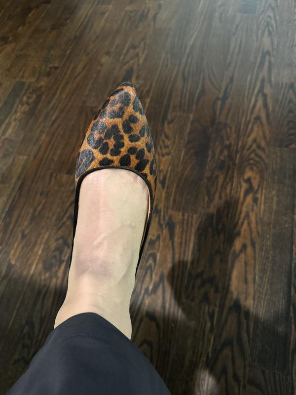Very cute shoes, with great leopard print that balance on both shoes. However too wide or too big. Trying decide to keep or send back. Thinking a half size smaller will make too short so may try an insert. Pricey so may not be worth it.