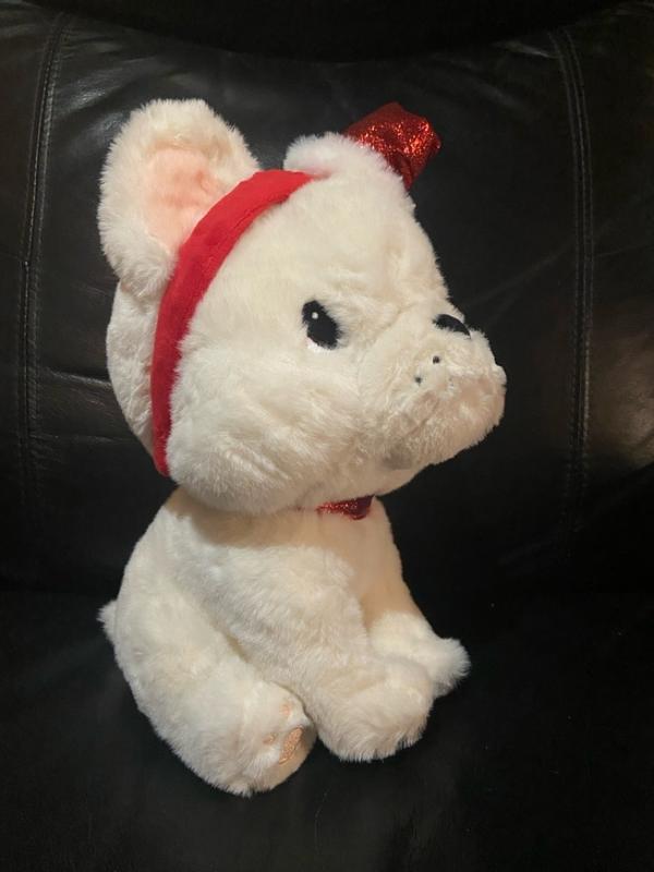This is such a cute plushie for Christmas. It's a French bulldog with a removable Santa hat that anyone can wear or leave it on the plush. It's super, duper, soft, and wonderful quality. Would make a cute gift or decoration for the holidays!!!