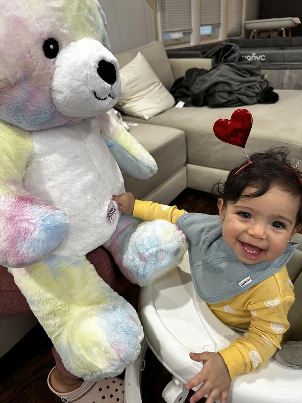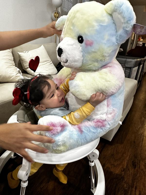 This is the cutest bear. It’s colorful, soft, and plush. The lights and sounds are an added bonus. They are not loud or distracting. It’s the perfect stuffed animal. The price was surprisingly low for this product.