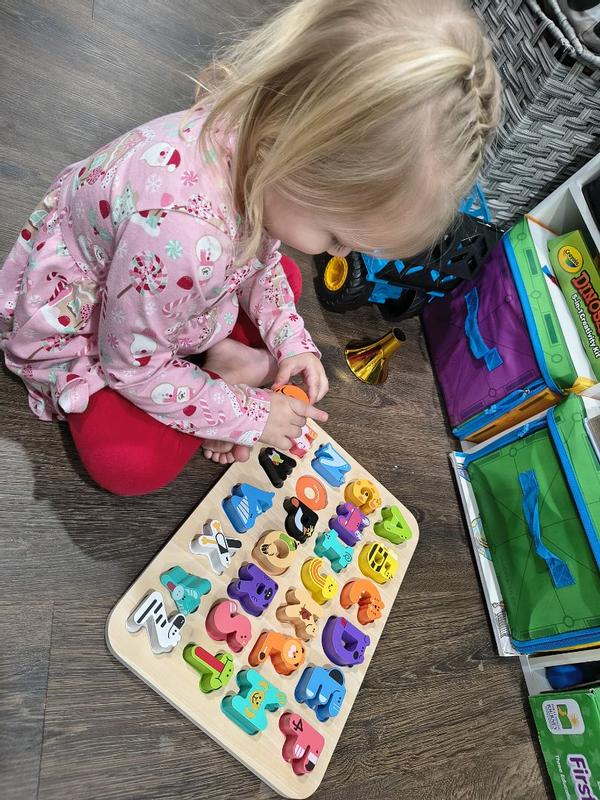 This alphabet puzzle is very well made and so fun to play with!! Kids love to play with and talk about the animals on each letter as they find the correct spot. I would highly recommend this to parents of littles!