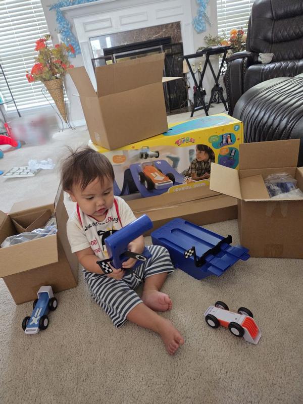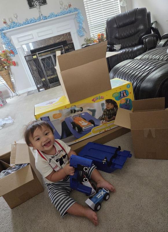 Oh my gosh my son is obsessed with this race track toy! He could play with it all day. He uses it with all types of cars and it's easy for him to put together. Great gift for a 3+ year old!