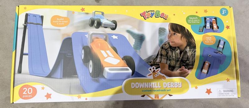 I bought the Geoffrey’s Toy Box Downhill Derby Custom Racetrack Set for my son, and it’s been a big hit in our house. The setup was quick and easy—we had the track ready to go in about 15 minutes, and my son loved that he could help snap the pieces together. The adjustable launcher is a fun feature because you can change the height and speed, which keeps things exciting each time we race. The cars go down the track fast, and my kids have had a blast experimenting with different layouts to see which design makes the cars go the farthest. The plastic pieces feel sturdy enough for regular play, and everything fit together snugly without falling apart. I also appreciate that the set came well-packaged with clear instructions, and all the pieces were in perfect shape. The only small downside is that taking the track apart can be a bit tricky, and sometimes if the launcher is angled too steeply, the cars can fly off the track. But honestly, that’s part of the fun for my kids—they love trying to “fix” their track designs. Overall, this set has provided hours of entertainment and creative play. It’s a great toy for kids who enjoy racing, building, and experimenting, and I’d definitely recommend it as a gift for any young car lover.