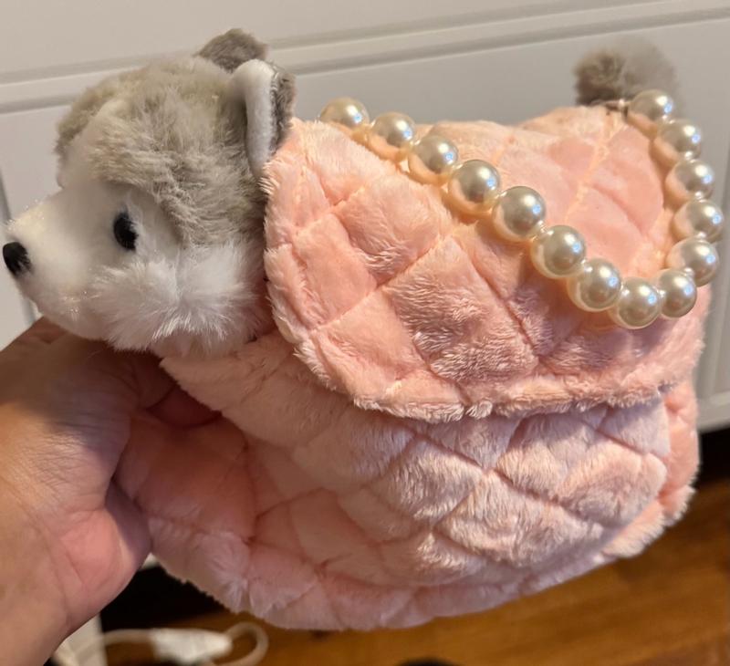 It’s a nice cute toy, my girl 4 year old love it! It’s so soft and light weight. They design it’s really pretty, the pink purse with pearl make it look elegant. The husky and purse are good quality and made so good. I think it’s a nice birthday or Christmas present for kids.