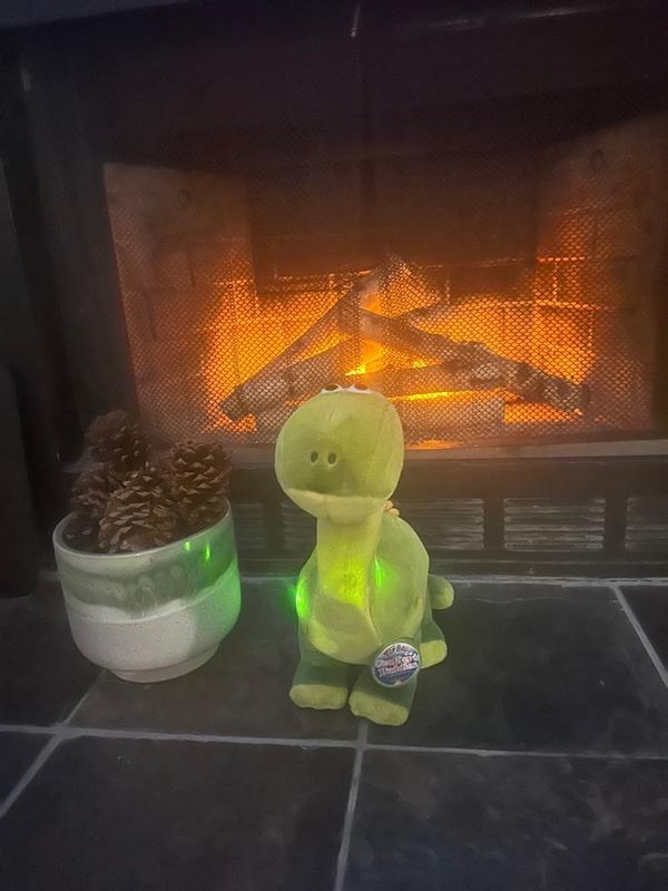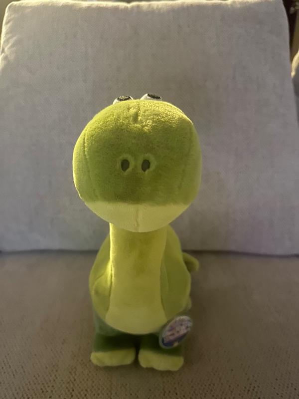 Such a cute and soft Dino for our little guy. The roar is little scary sounding at first. It caught me off guard since he’s such an innocent looking dinosaur. He’s nice and plush, not too hard. He’s a nice size too. And the lights are a nice added touch.