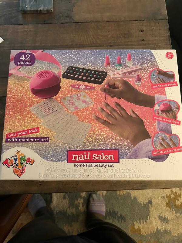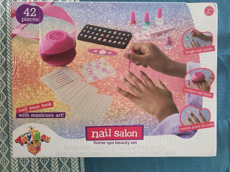 My daughter loves anything that is related to beauty and fashion, so when I saw the Geoffrey's Toy Box Nail Salon Home and Spa Set, I knew it would be a perfect gift for her. And I was right! She absolutely adores this set. The first thing that caught my attention was the bright and colorful packaging of the set. It immediately drew me in and I could tell that my daughter would love it too. The set includes everything she needs to create her own spa experience at home, including a nail dryer, polish, stickers and more. My daughter enjoys spending time pampering herself with this set, and it has also become her go-to activity when she has friends over for playdates. They love getting their nails done and pretending to be at a real nail salon. It's also a great way for her to express her creativity and experiment with different colors and designs.