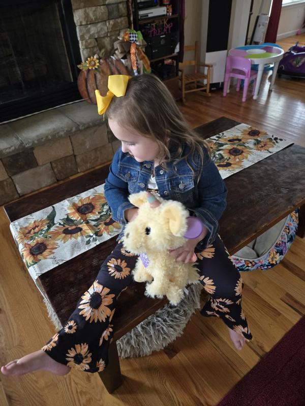 So cute made kind of cheap with the fur but still very cute and the sounds and lights are very durable and functional my daughter enjoyed playing with this toy she loves it
