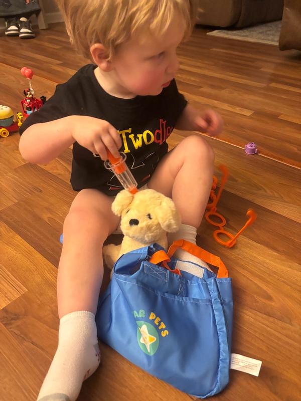 My son loves this toy. He pretends to be the vet. He likes to feed the dog and wear the stethoscope. Everything fits in the bag for easy clean up. My son is two.