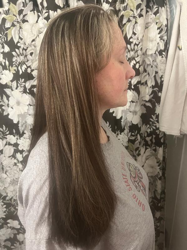 I thought I had a great flat iron until I was introduced to this marvel of a tool! It is light and easy to maneuver because the cord is long and flexible, it twist with you as you move around your hand. The iron doesn’t have a temperature switch but it is motion responsive and it adapts to your hand movement and hair needs. I love that it never leaves my hair extremely hot like my titanium iron does. Its started with one single button and in less than 3 seconds it beeps and it’s ready to use. The plates run smoothly even with heat protection and dry shampoo on my hair. It comes with a short silicone sleeve to protect the top end. As you can tell from my pictures it smoothed and straightened even my most rebellious gray hairs in a matter of a few slides. My hair is left straight yet with body, shiny, smooth and soft. This is going to be my go-to tool during my gray hair growing journey since it helps me avoid frying my and abusing heat as I learn to take care of my grays.