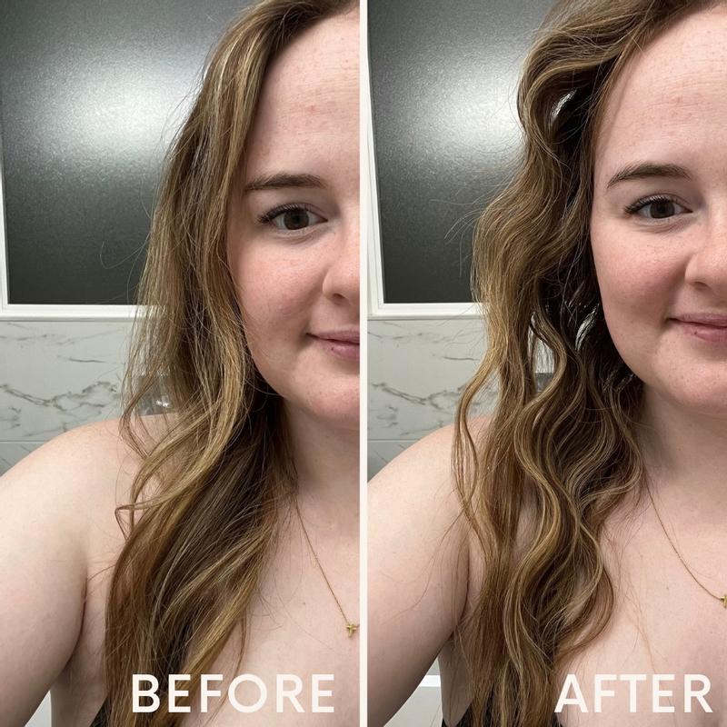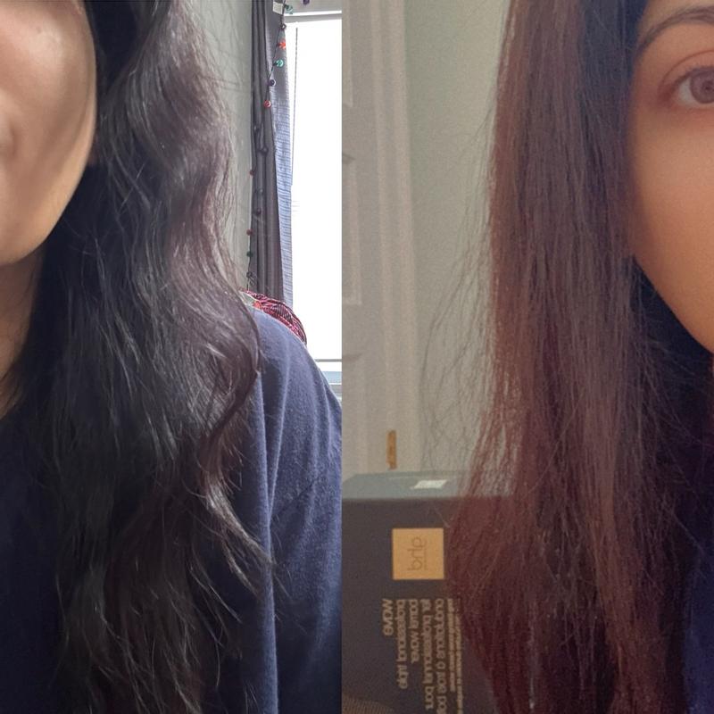Took my hair from half wavy and frizzy to smooth and perfectly textured. It has silicone on the back and tip so it’s easy to hold and can be put down without burning! It’s a little challenging to use at first but once you learn it’s amazing!