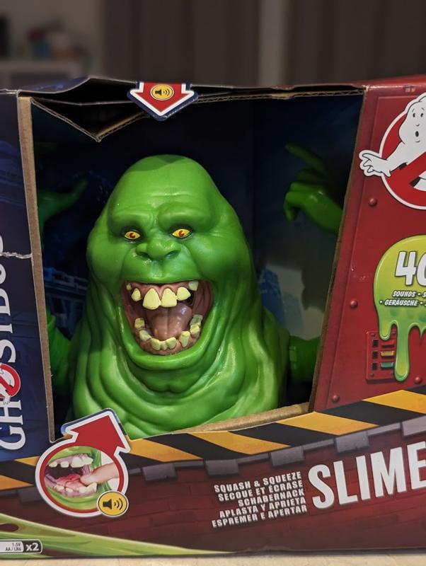 This is a very realistic toy for Ghost Busters fans! Slimer looks so much like he does in the movie! He makes 40+ sounds, once batteries are put in. You can Squash & Squeeze him! It takes 2 double AA batteries. Gives kids hours of fun and silliness!