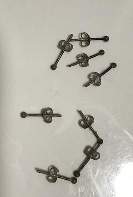 This are TINY earrings. They arrived slightly bent because the post are extremely fragile. The post have turned completely black with wear. I have tried jewelry cleaner and a polishing cloth and it will not come off. Don't waste your money.