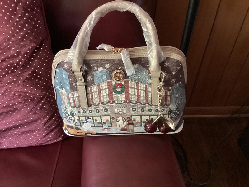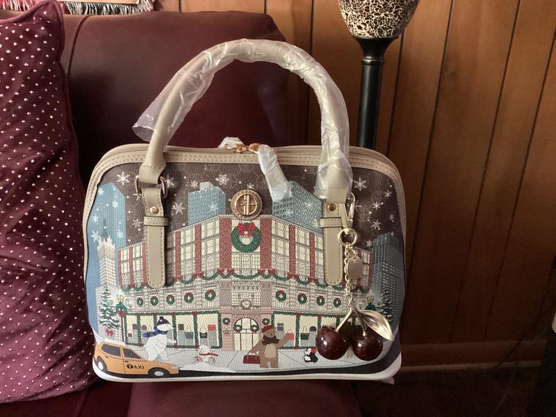 I saw this in store and knew my mother-in-law would love it for the holidays. I immediately texted her the photos and she told me to buy it. She loves it! She said she loves the "old -timey" Christmas scene, the size, the extra crossbody strap and all the storage spots inside the handbag and the zippered compartment on the outside. She was happy I found it for her