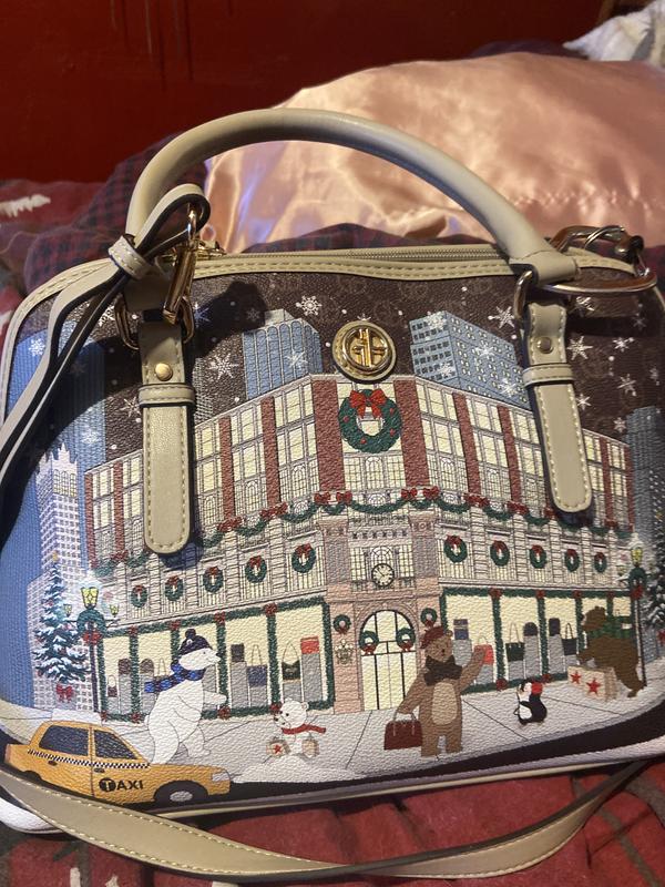 I have gotten so many compliments on this bag. I’ve always loved Macy’s at Christmas time. The inside has pockets and a divider making things easier to find. I use the shoulder strap and the length is adjustable. Overall a good addition to your holiday attire.