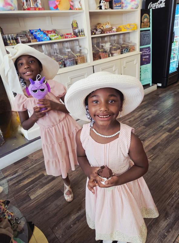 This is a very cute hat, but was not as described. The description said white, but it wasn't even off-white. It had a very yellow tint and was more like a beige. If it had been just a little off-white, it would have been acceptable. Also, it had a flaw - a dark spot right on the front of the rim.