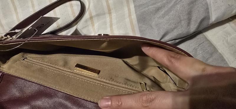 Beautiful and functional crossbody bag. The burgundy/burnt red color is lovely and perfect for fall and winter. Can be use during day and evening. The straps are adaptable and comfortable. I really liked the back pocket which is perfect to keep phone safe and easy to access.