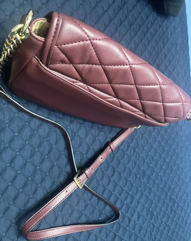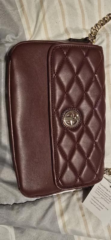 I really like the bag. I love the color as it goes with black and brown clothing and you can dress up or down. It is a little too small for everyday use but whenever possible I like to use a bag this size. It holds my phone, wallet, keys, glasses and of course some lipstick! Not overly crazy about the quilt look but the chain detail on the strap makes it stand out. Only negative would be is that it is not leather, but it looks good for what it is, not to mention many people are getting away from animal derived products.