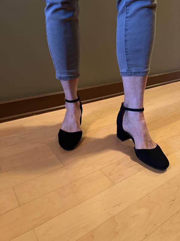 These heels are so comfortable and very cute! I have narrow feet and small ankles so the width is good but I need to make an extra hole in the strap for a better fit. I don't wear heels often because I can't walk well in them but these are low enough and the heel is chunky so I can walk easily in these. I got the nude patent color and the color in real life is a little darker and more pink but I prefer the real life color over the one in the listing