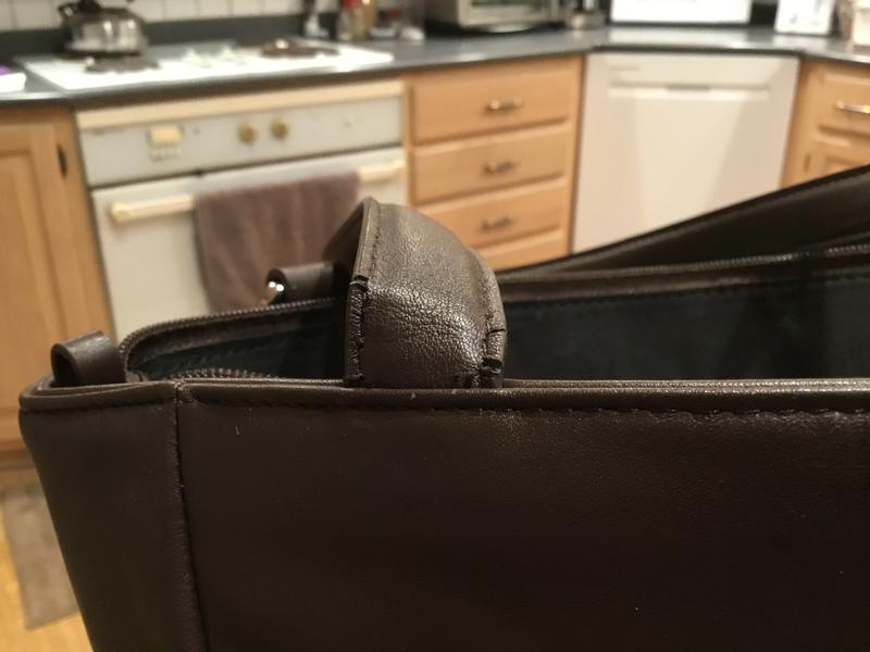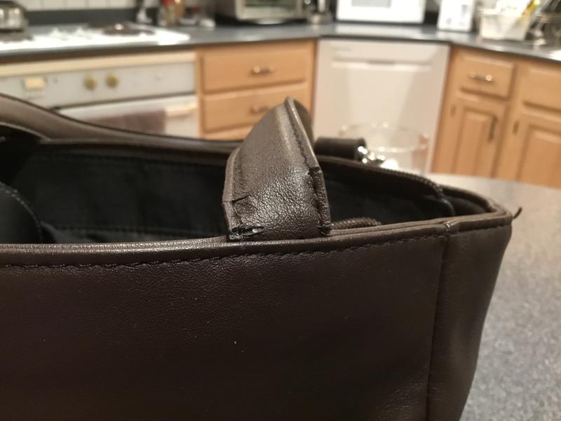I’ve had this purse for 9 months. I have not used it often. It has nice compartments for organization. It IS NOT; however, leather. The handle has begun to separate and you can see that it is most certainly a man-made “pleather”. Shame on Macy’s for representing this purse as made of leather.