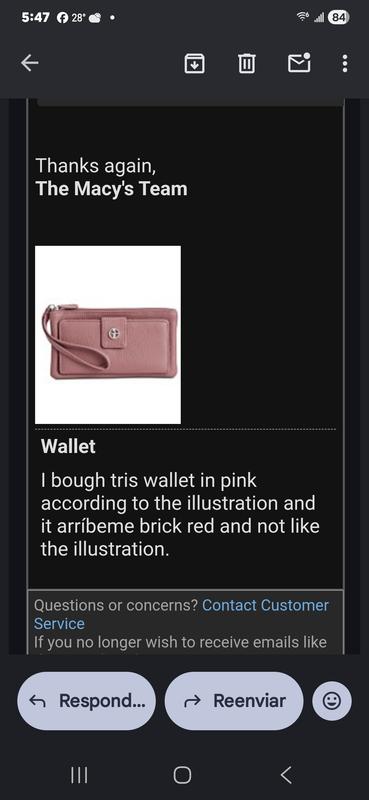 I bough tris wallet in pink according to the illustration and it arríbeme brick red and not like the illustration.