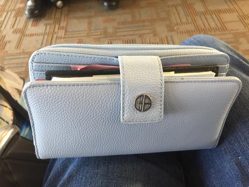 Good size, lots of pockets and card slots but the card slots are extremely tight and it is very difficult to remove a card. Using every slot, which is what I need, makes it even harder. GB has been my go to brand for purses and wallets, but this wallet doesn’t meet expectations.