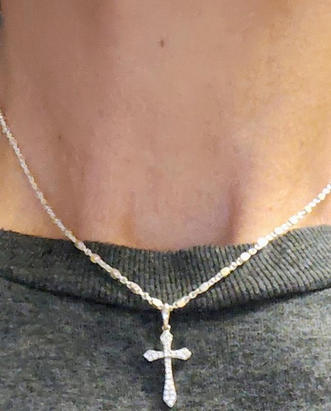 I was looking for a simple gold chain to hold a pendant and this fits the bill. I have been wearing it for about a month, and there have been several times I have forgotten to take it off to shower and it is as beautiful as when I first got it. It has lovely simple accents that make it glittery but still simple.