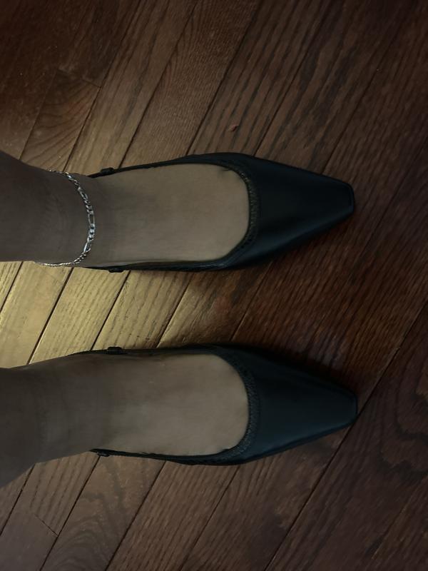 The flats pictured have a cushioned insole ha makes the shoe comfortable to wear. The strap is very lose and is a little flip floppy when you walk. Style IMAA. Black Size 8. Good for brunch dates………..