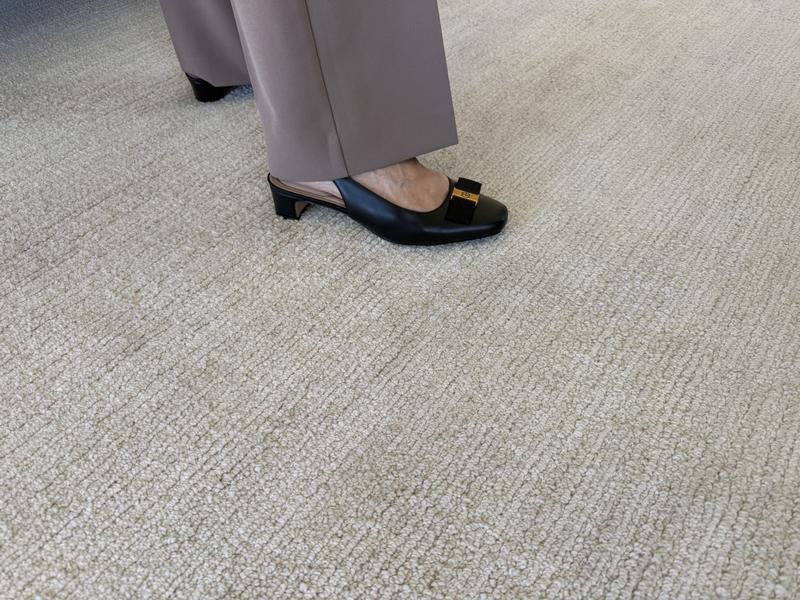 I like these shoes for a not too dressy look, easy to dress up jeans or pair with nice pants. I expected them to pinch my toes but they are wide enough in the right places that they don’t! Though not leather, they have a little give, even after just a couple of wears. The heel is stable and has a cushioned pad that helps. They run true to size and the tasteful classic detailing will provide for a lot of use. I would recommend this shoe if you need a low-heel classy comfortable dress shoe.