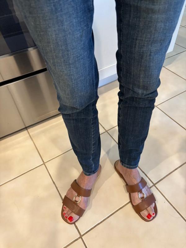 These are great for the summer! I love the camel tone color and it makes it easy to match for all occasions. The shoe is true to size, I felt no need to size up. I also love the cushiony bottoms which make its more comfortable especially if you’re wearing it for longer periods of time. The hardware detailing is also a nice touch.