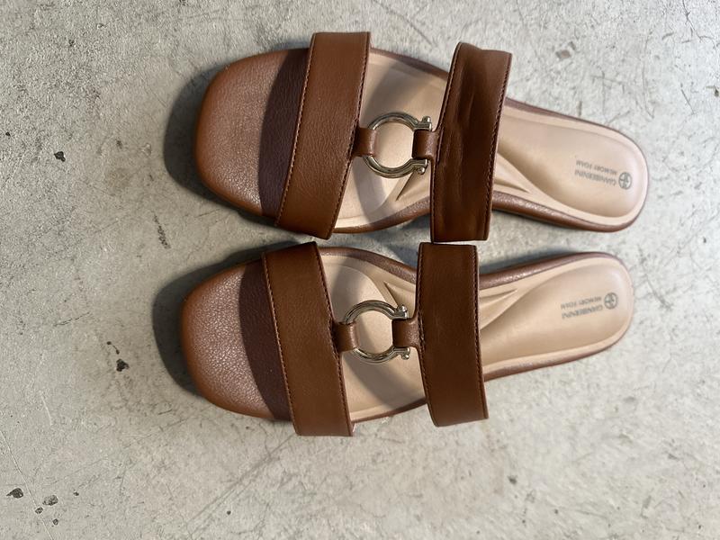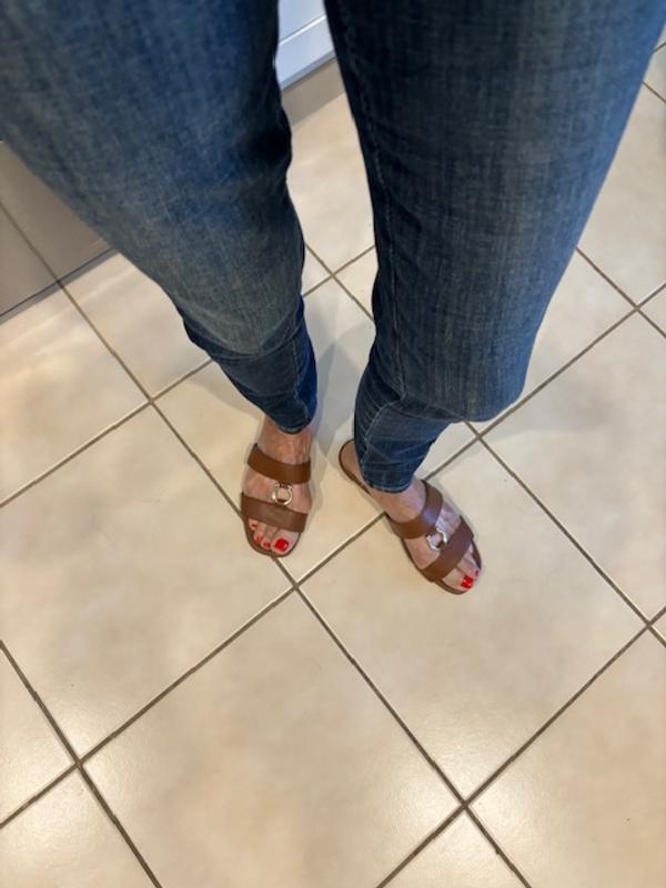 These sandals are very cute and stylish. The cinnamon color goes with anything. Can be worn with casual outfits and summer dresses. They are comfortable and good quality. True to size. The metal hardware gives it a nice look.