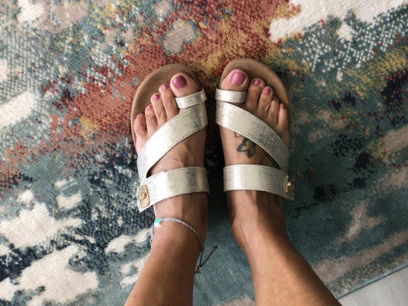 I really like my new Giani Bernini sandals. They are comfortable and very classy. My feet sweat a lot so the footbed material keeps my feet dry. I could buy every color :-)