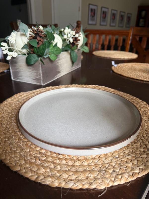 The dinnerware is lovely to look at, but the very flat rimmed plate is hard to grab. I was afraid I would be breaking or chipping plates as I placed them on our granite counter. I decided to go with a more traditional dinner plate.