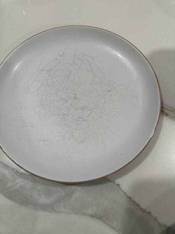 Glaze scuffs easily. Nice weight and looks great... initially. 1 month of normal daily use with a household of two adults, and the glaze is scuffing up considerably from the silverware. Very disappointed.