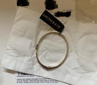 I love this rose gold hinged bangles! Givenchy, good quality of course. I bought this bangle to pair with the Givenchy rose gold bolo bracelet. Perfect. I'm a XL sized mature women and it fit me fine. Clasp is easy to manage to put on and off.