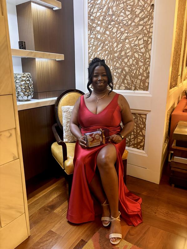 I absolutely loved this gorgeous necklace. It paired so well with my outfit. It was easy to put on and laid just right on my chest.