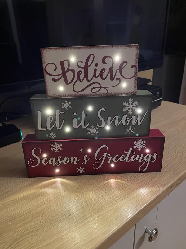 11.81" Christmas Wooden LED Lighted Block Word Sign 10 Bulbs