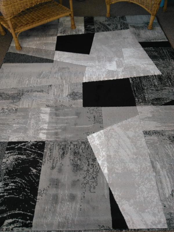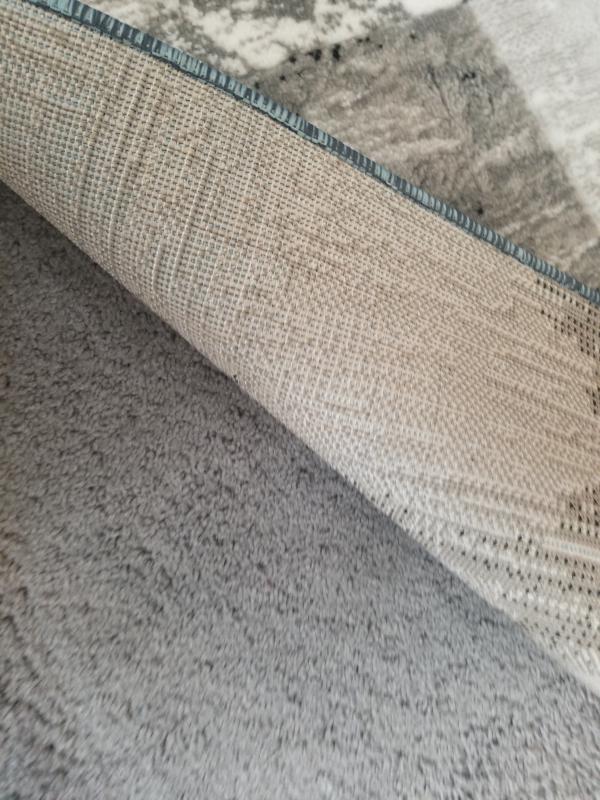 This rug is amazing. The pattern is gorgeous. The colors flow well. Light grey and cool blue. I feel calm, just looking at it. It is much easier to clean and vacuum than my previous rug, which was a bit wooly. The tiny specks of black make it hard to spot any stubborn stains. If you have kids and need a rug that is functional and beautiful, then look no further. I highly recommend this one.