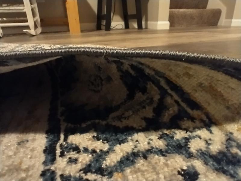 Beautiful rug I love the pattern and colors, we used it to put in front of a electric fireplace which gives a warm cozy feeling. Not very tick, which is nice. We use the vacuum on it with no problem. I love that it is washable.