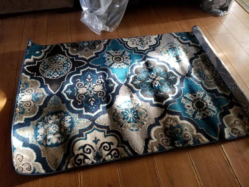 I got this a few days ago and it looks wonderful in front of the couch. This Home Dynamix Tremont rug has a stunning pattern and design! It's extremely soft and comfortable to walk on. This rug is nice and thick, plus easy to maintain. I would definitely recommend Home Dynamix Tremont Rugs for anyone looking for a new rug.