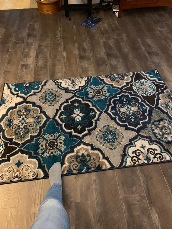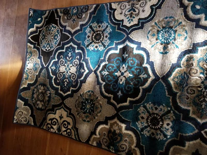 Home Dynamix Tremont rug is absolutely gorgeous. The colors are beautiful and vibrant. I love the teal, blue, taupe, and brown together. The pattern is nice and large too.The rug itself looks and feels high quality, has a nice texture and is thicker than I expected. It’s soft and gorgeous. I would absolutely recommend it.
