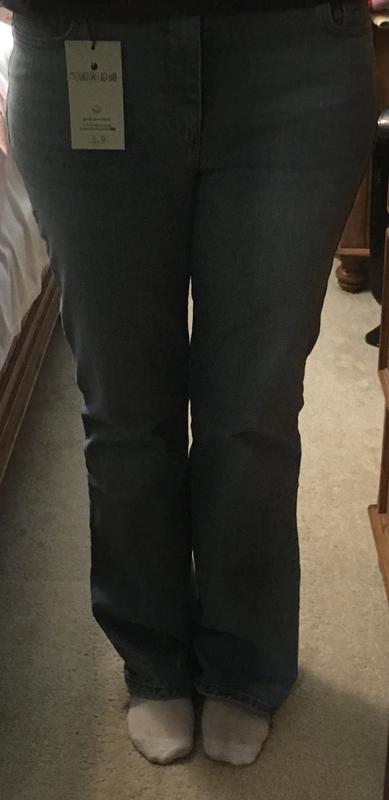 I tried 3 different sizes of the White, Bootcut Jeans. I liked the look of them as well as the fabric However, NONE of the sizes fit. I am normally an 8 or 10 so I ordered both, the 8 wouldn't zip and the 10 was also too small so I took them back and ordered the 12 which was Huge. I will not try this brand again, obviously is Not meant for my shape!